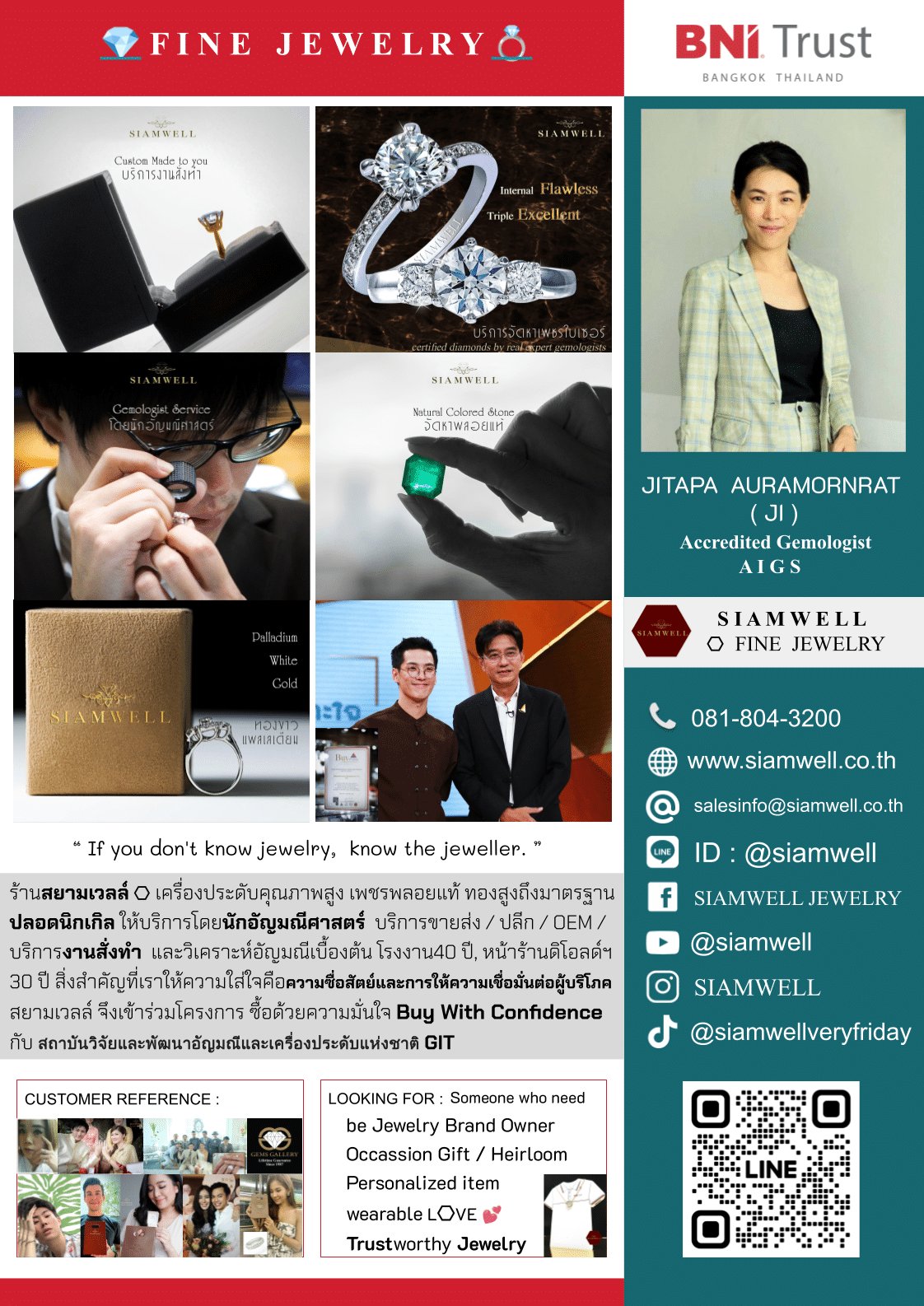 ร้านสยามเวลล์ ⎔ เครื่องประดับคุณภาพสูง เพชรพลอยแท้ ทองสูงถึงมาตรฐาน ปลอดนิกเกิล ให้บริการโดยนักอัญมณีศาสตร์ บริการขายส่ง / ปลีก / OEM /