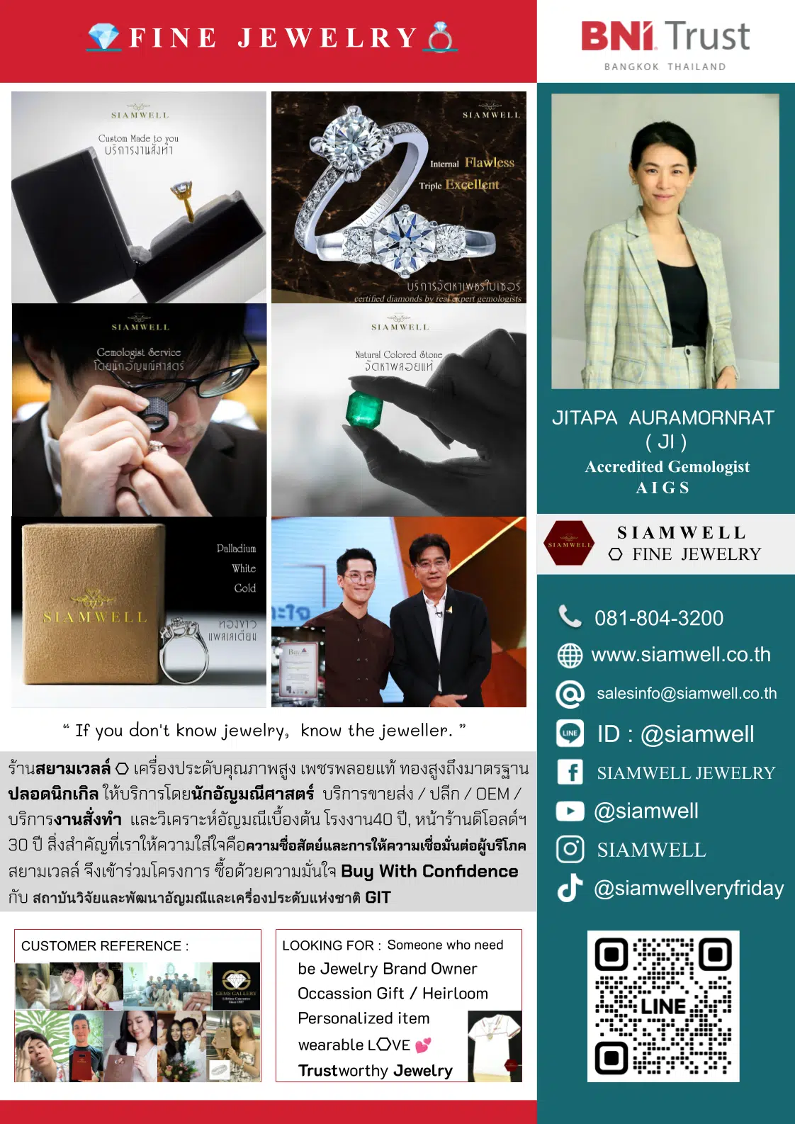 ร้านสยามเวลล์ ⎔ เครื่องประดับคุณภาพสูง เพชรพลอยแท้ ทองสูงถึงมาตรฐาน ปลอดนิกเกิล ให้บริการโดยนักอัญมณีศาสตร์ บริการขายส่ง / ปลีก / OEM